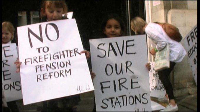 Film length: 4:50 Pension plans for firefighters will put them, and the public, in danger. Firefighters explain why, and talk about the added danger in London of 10 fire stations being closed down.