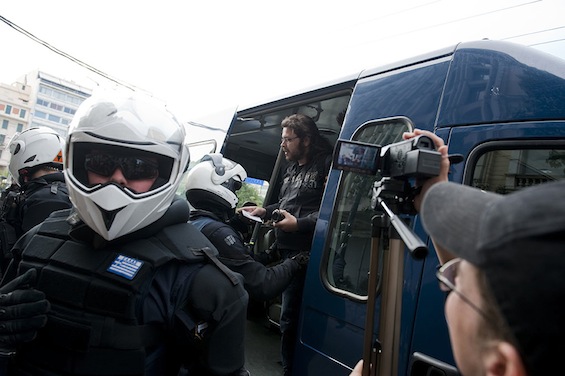 Harrassment of Journalists on Independence Day in Athens 25-3-12 Greek riot Police are seen targetting an accredited Greek photographer and preventing British journalists from filming the incident.