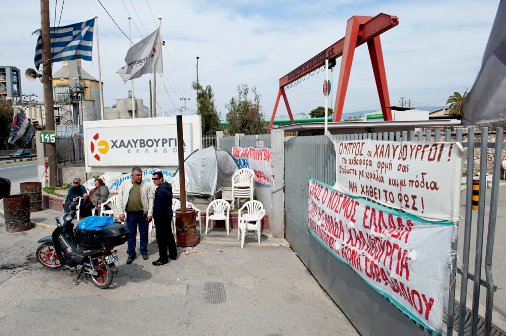 Strike and occupation at the Elliniki Halivourgia steel works in Athens Greece. 23-3-12 Strike and occupation at the Elliniki Halivourgia steel works in Athens Greece. 23-3-12