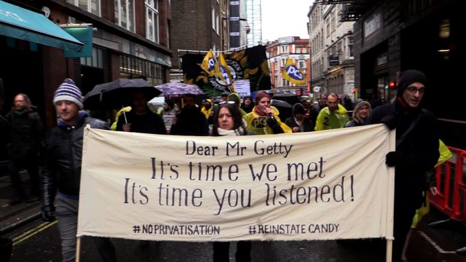 Film length: 4:33 As workers at the National Gallery carry out their second 5 day strike against privatisation of the gallery and the victimisation of PCS rep Candy Udwin, the chairman of the board of […]